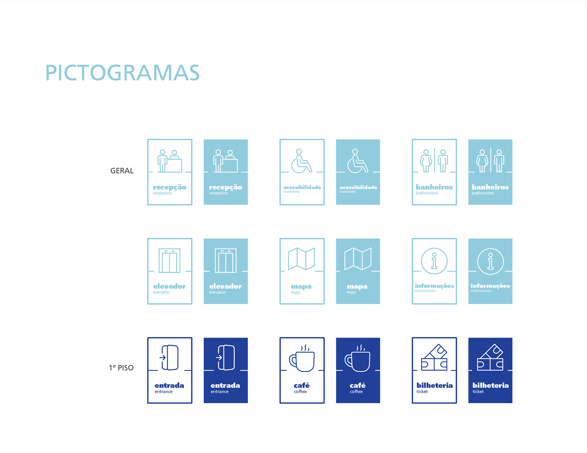 Criação de um sistema de identidade visual, com as aplicações na sinalização, roteiro de visita e papelaria do Museu.